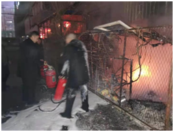 2020年1月28日晚20點50分,沈陽廣播電視臺北院家屬樓南側(cè)1單元飯店突發(fā)火情,家屬樓值班人員第一時間發(fā)現(xiàn)情況及時與我處門衛(wèi)聯(lián)系尋求幫助,門衛(wèi)保安隊員在了解情況后馬上聯(lián)系值班班長孫永升,孫永升出于職業(yè)的敏感性,馬上啟動緊急預案,向監(jiān)控中心及隊長進行報告后,帶領(lǐng)保安隊員及消防設(shè)備一同趕赴火災現(xiàn)場。