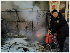 20點56分,監(jiān)控室負責人徐志民,保安班長孫永升,隊員馮玲瓏、孫永翔,家屬樓物業(yè)負責人劉兆彥及家屬樓值班人員組成的救火隊伍迅速趕到現(xiàn)場,由監(jiān)控室負責人徐志民單位現(xiàn)場指揮。由于現(xiàn)場火勢較大,近三米高的線路已經(jīng)被完全燒毀,為避免發(fā)生二次爆炸及更為嚴重的后果,徐志民指揮大家先用滅火器將火情進行控制,并將液化氣罐從火場中搶救出來,避免了液化氣罐發(fā)生爆炸,此時張主任、王主任、宮臣、隊長肇興柱等人先后抵達火災現(xiàn)場,對火災撲救工作進行了詳細的部署,而后眾人利用滅火器、消防栓等消防設(shè)施徹底將明火完全撲滅。與此同時消防車也及時趕到,并對火災現(xiàn)場進行了詳細確認,在確保沒有安全隱患后詢問了火災發(fā)生的詳細情況,并對英勇救火的所有人表達敬意。沈陽廣播電視臺領(lǐng)導得知此事后十分重視,第一時間詢問火災處置情況及保安隊員的安全情況,并對此次火災應急處置深表贊揚。